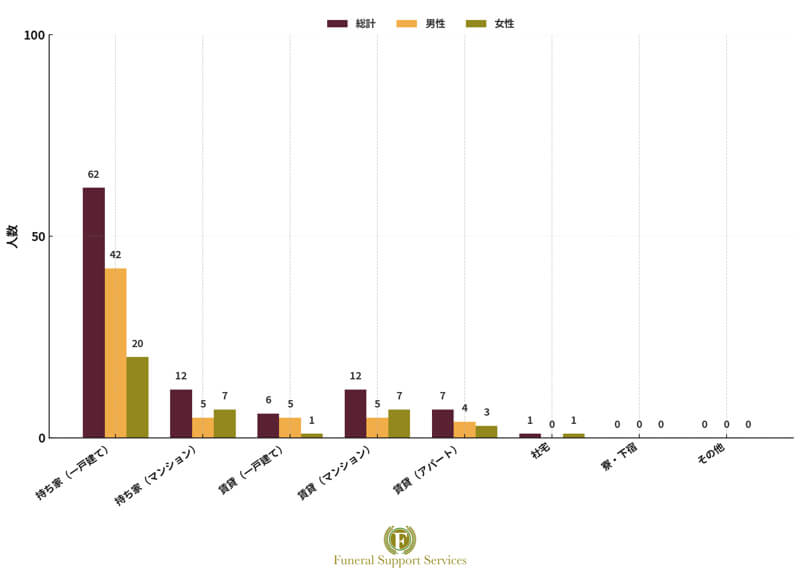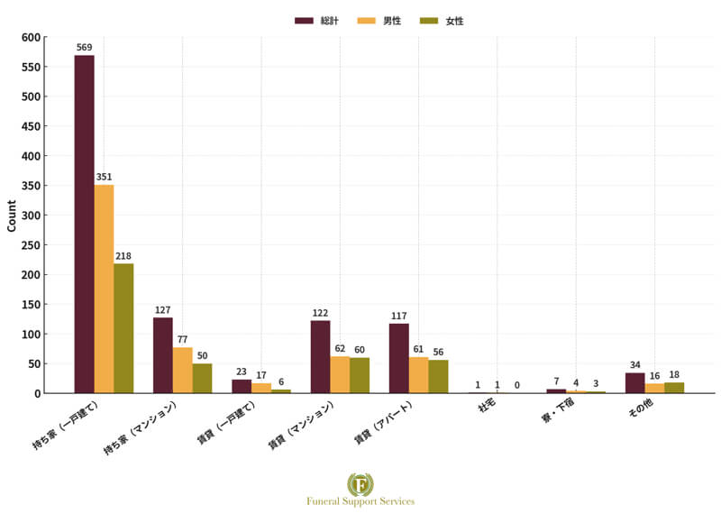 この結果からは、孤独死に対する感情的な向き合い方に性別差があることがうかがえます。女性は不安を感じる割合が高く、男性は中立または明確に否定する傾向が見られました。高齢期における孤独への意識や心構えに違いがある可能性があります。